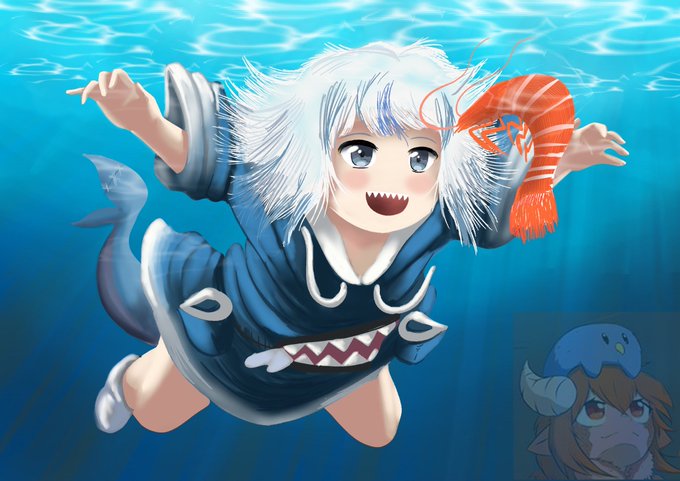 Smells like…teen-y shrimp…? A fun little tribute to both @gawrgura and Nirvana. #drawing #digitalart #hololive #hololivegirls #hololiveenglish #gawrt #chumbuds #gawrgura #nirvana #nirvanafans #smellsliketeenspirit