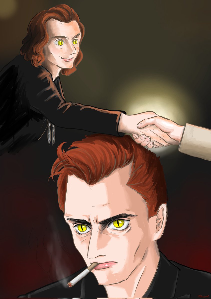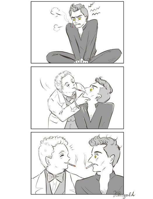 苦しい時は、あの日の温かい手の感触を思い返して耐えるクロウリー +煙草 #GoodOmensFanArt #Crowley #smoking twitter.com/bluegold0909/s…