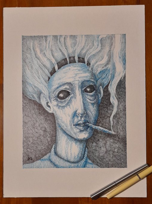Smoking is harmful, thinking is harmful ... #drawing #smoking #portrait #dessin #illustration #bookillustration #art #artistsontwitter #inkdrawing #waterman