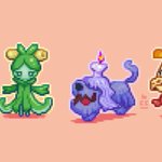 Some of my favorite of the new pokemon coming tomorrow in the new #PokemonScarletandviolet! 💜🤩 #PokemonScarlet #PokemonViolet #PokemonScarletViolet #pokemon #pixelart #pixelartist #pixel #ドット絵 #Fuecoco #smoliv