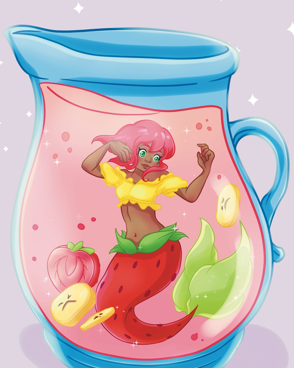 I am still taking part in Mermay this year, my first prompt was Strawberry Banana😁 I decided to go with a smoothie theme this time around🍓🍌hope you guys are all doing well and staying safe! #mermay #mermay2022 #strawberrybanana #smoothie #strawberry #banana #mermaid #art