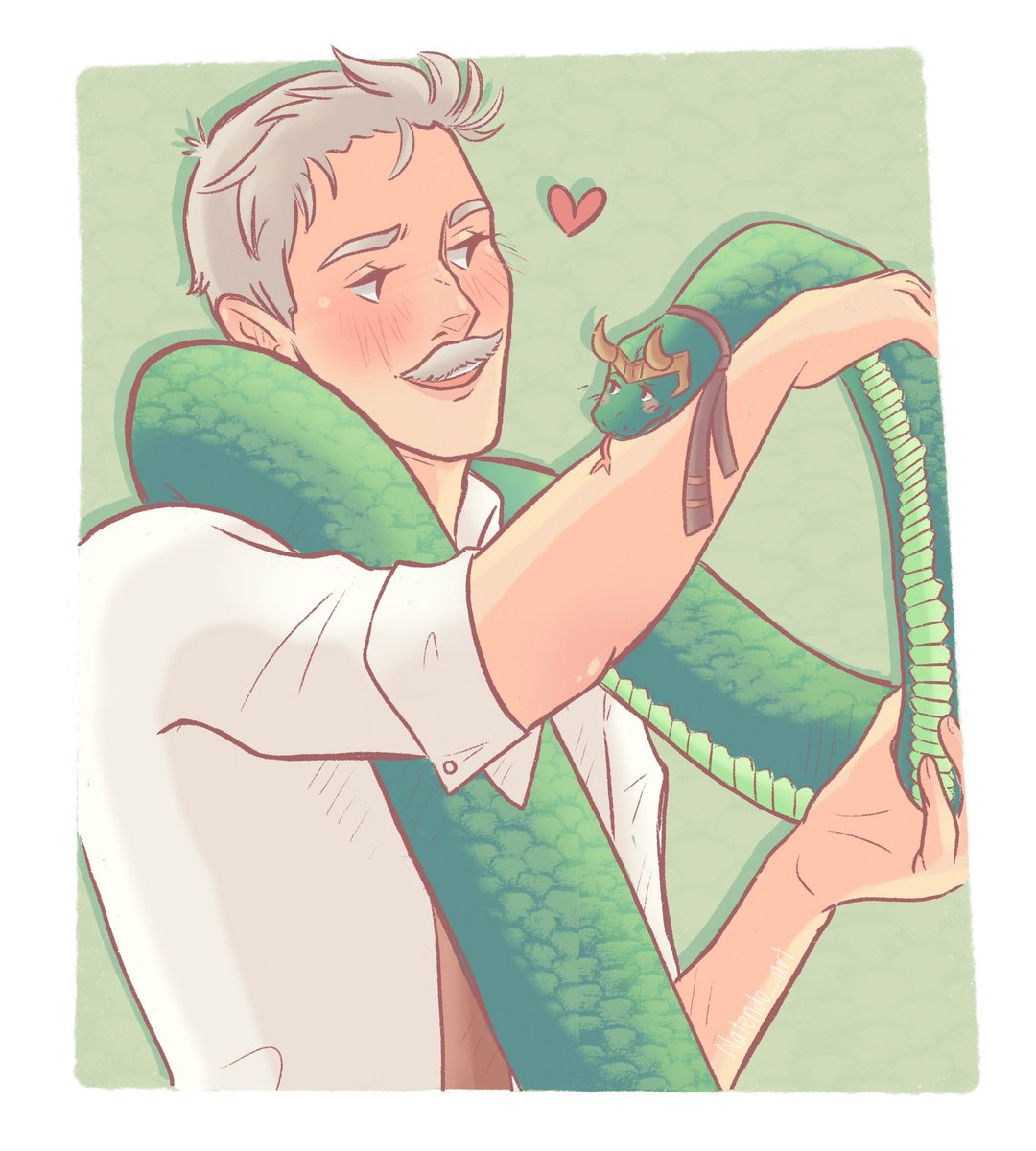 🐍 Portable husband 🐍 . . Some days Loki just let’s Mobius carry them about lol It took a while for their coworkers to get used to having a big snake about the office xD . . #lokius #Loki #Mobius #lokiseries #snakeloki