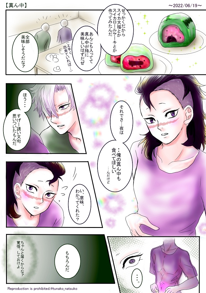 #実玄版深夜の真剣60分一本勝負 #sngnこれこれF お題「真ん中」使わせていただきます💕色とか塗り忘れがあるけど、そのほかも粗があるけど…まぁいいか💚💜無理やりお題に近づけちゃいました(^^)結局サネはゲヤが大好き💖いつでも一緒☺