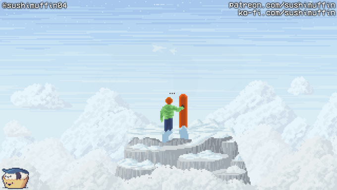 ...Probably shouldn't've climbed to the top of this mountain above the clouds to go #snowboarding... #pixelart #pixel_dailies @Pixel_Dailies #aseprite #ドット絵