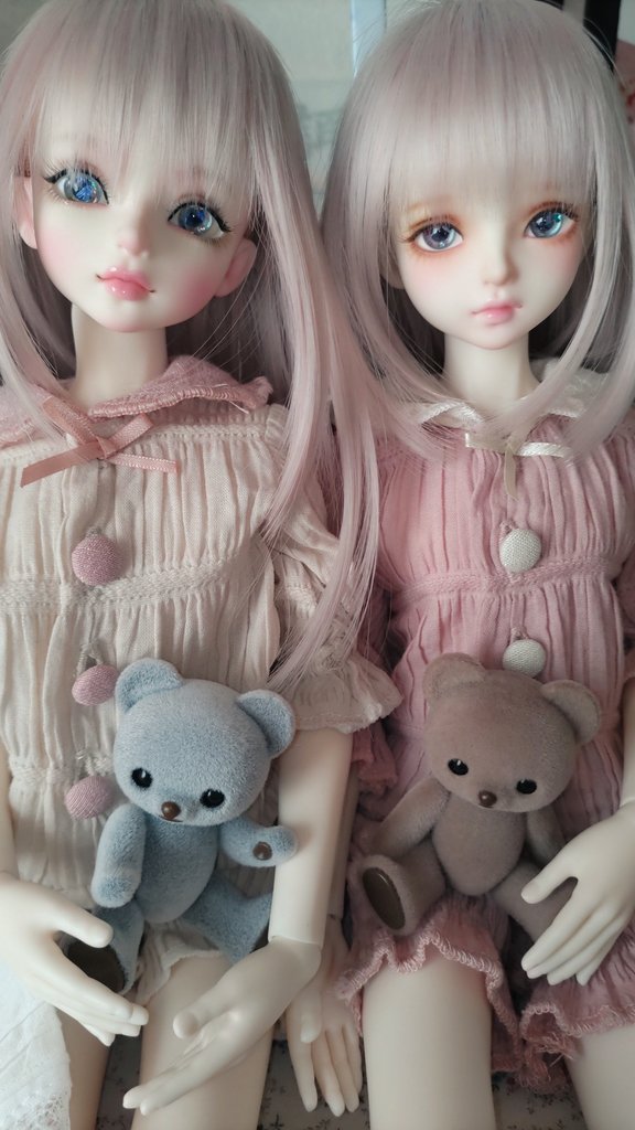 おはようございます٩(*´꒳`*)۶ お召かえしました♡ 昨日のツイートに間違えて書いてしまった (恥) パジャマパーティー #myoudoll #櫻zuzana #櫻delia #snowdelia #snowzuzana #うちの子かわいい #ドールオーナーさんと繋がりたい #おはドル
