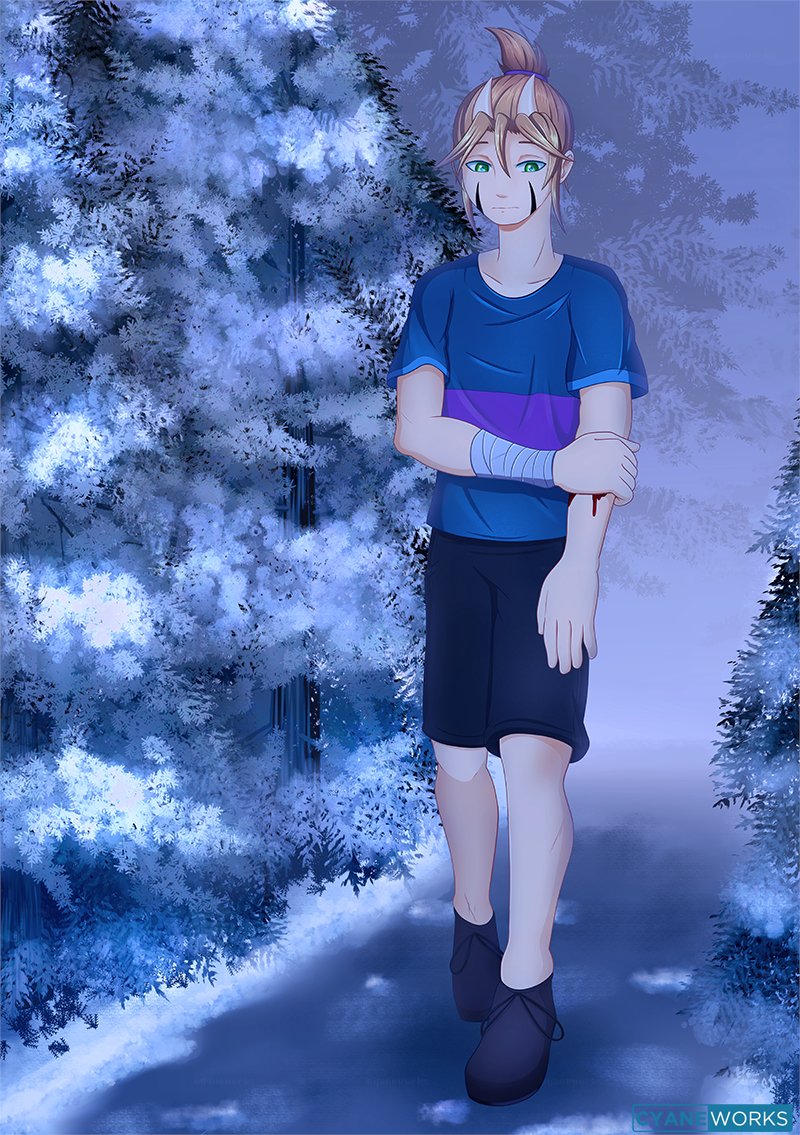 Commish for @lagooboy Hooman Richard in GZ!Frisk clothes Sad bab walking through snowdin #crossover #art #fanart #frisk #richard #undertale #snowdin #gztale