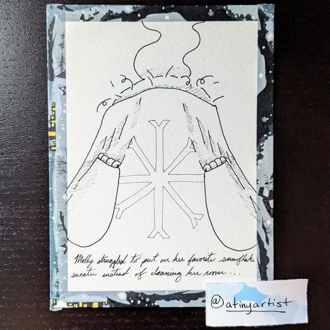 Molly struggled to put on her favorite snowflake sweater instead of cleaning her room... #illustration #illustrationartist #illustrator #kidlit #kidlitart #kids #sweater #sweaterweather #snow #snowflake #peachtober22 #mollyneedstocleanherroom