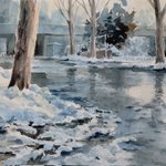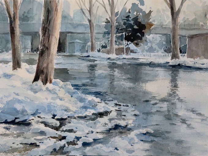 都会の雪、普段見ている景色が新鮮に見えます。#スケッチ #透明水彩画 #水彩画 #雪景色 #冬 #写生 #watercolour #watercolor #sketch #snowlandscape #winter #aqurelle