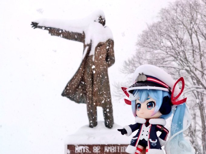 2/28のテーマ【こんげつのしゃしん】【過去】【既出】 今月の主役はカニ船長雪ミクさん! 「れっつご〜っ♪」 冒険家過ぎる天候だった… #深夜のねんどろ撮影60分一本勝負 #みくさんぽ #雪ミク2022 #Snowmiku2022