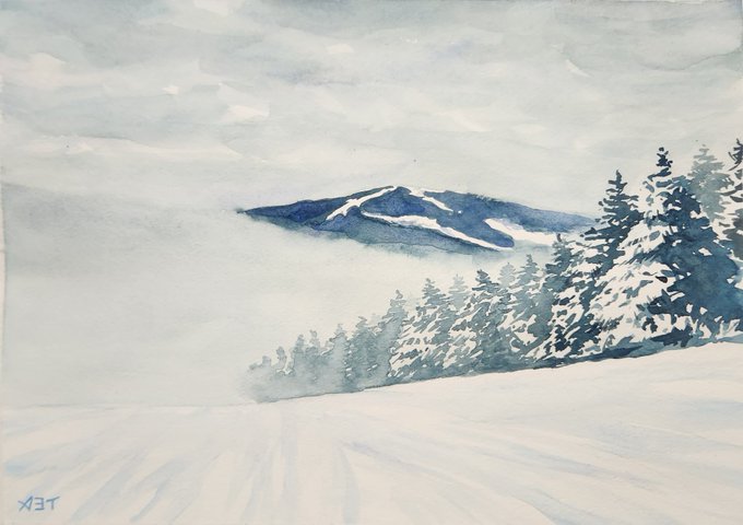 The slope ゲレンデ #watercolor on paper F4 size #watercolour #watercolorpainting #watercolourpainting #landscapepainting #snow #snowscape #水彩画 #透明水彩 #風景画 #雪 #雪景色