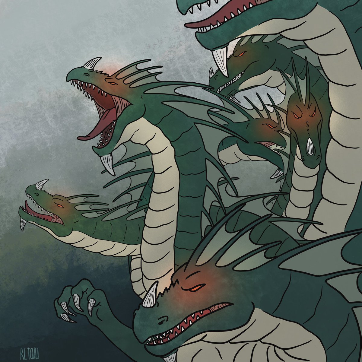 Day 14 of the #snowtober22 by @snowsart Hydra #art #artchallenge #traditionalart #traditionnalline #ink #inktober #inktober2022 #originalart #fantasy #fantasyart #myart #myth #mythology #hydra