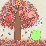 おはばコ~☀️ はっぱ界でもだいぶ紅葉が見頃になったんだ! 真っ赤に染ったもみじってすごく綺麗だよね〜🍁 もみじが仲間の葉を応援しに行ったみたいだよ(´˘`*) #お茶をすすりながら #お団子も食べたい #あおばコ #イラスト #紅葉 #sns秋の芸術祭2022 ★お昼におまけ絵があるよ!