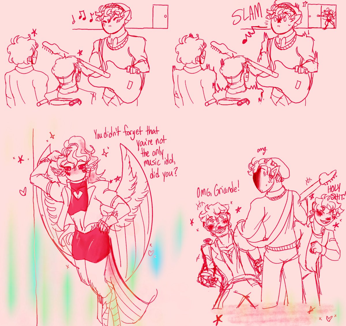 Doodling #socketduo to my heart’s content, 4/?? Okay but I couldn’t get away with drawing resident music man without Ariana Griande, now could I? (Featuring Mr. Goodtimes and Mr. Underscore, because I need the four of them on a team). #grianfanart #wilbursootfanart #mcytfanart