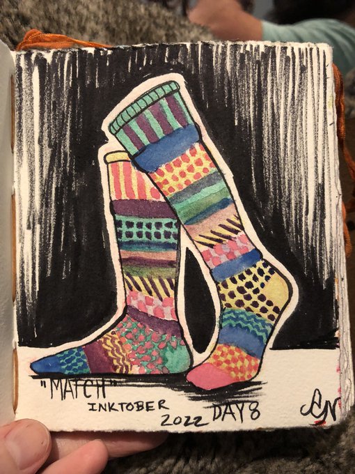 Late here: Finished last night but blanked on posting.😅 “Match” Warm socks are my go to as the weather gets cooler. #inktober2022match #Inktober #inktober2022 #socks #match #drawing #ink #sketch