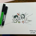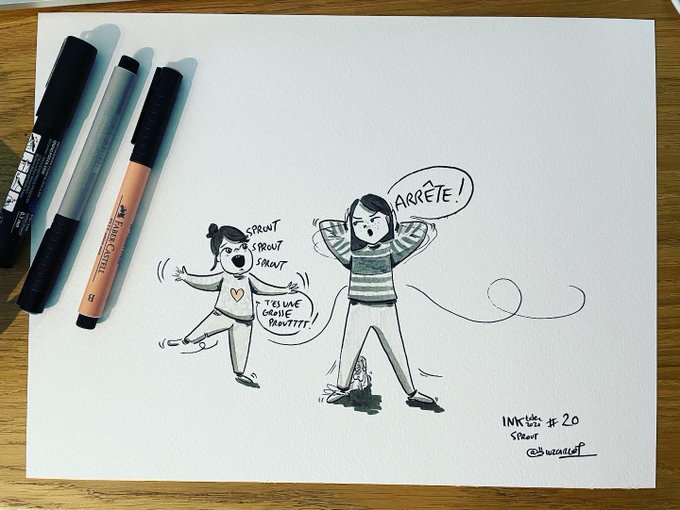 Thème Collision #17 Le quotidien avec des enfants qui se rentrent dedans H24 ! Et en bonus le brouillon de l’idée faite sur un coin de feuille pendant mon café. #inktober #inktober2021 #collide #lesenfantssontformidables #soeurs #luzcargot