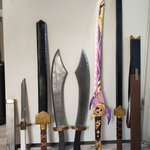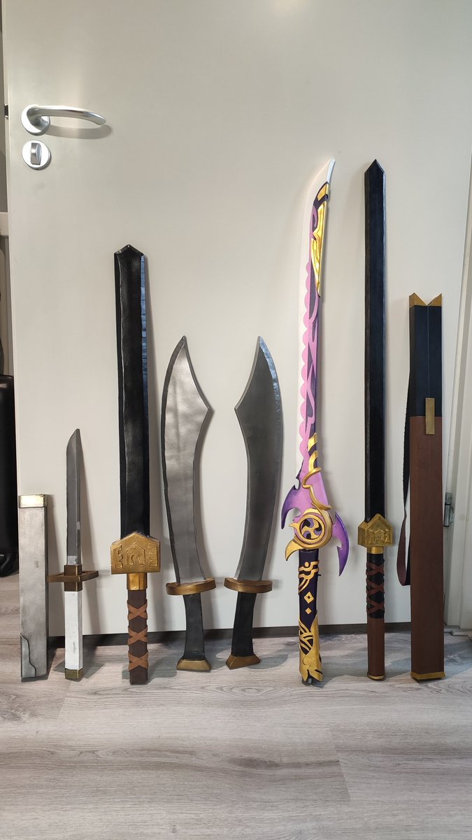 LTR: Young Genji's Washizaki 2018, Sokkas space sword 2019, Zuko's dualblades 2020, Mistsplitter Reforged 2021, Sokkas space sword + sheath 2022. The mistsplitter also lights up. #avatar #overwatchcosplay #GenshinImpact #sokka #cosplay #sokkacosplay