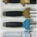 LTR: Young Genji's Washizaki 2018, Sokkas space sword 2019, Zuko's dualblades 2020, Mistsplitter Reforged 2021, Sokkas space sword + sheath 2022. The mistsplitter also lights up. #avatar #overwatchcosplay #GenshinImpact #sokka #cosplay #sokkacosplay