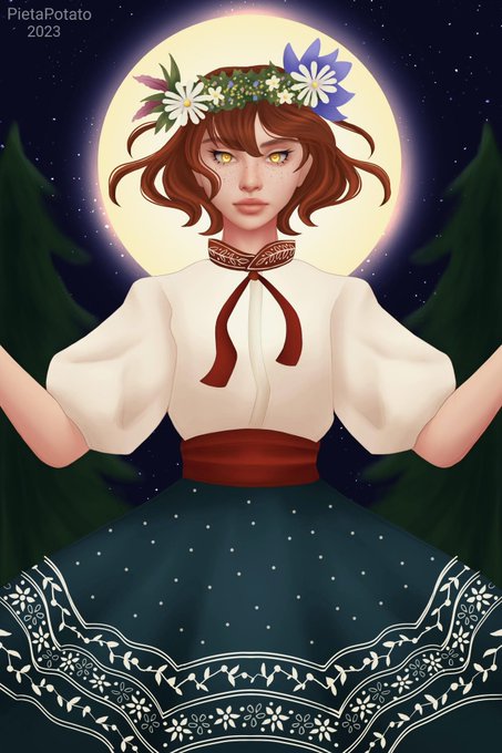 "𝙼𝚢 𝚊𝚞𝚛𝚊 𝚜𝚑𝚒𝚗𝚎𝚜 𝚊𝚝 𝚕𝚊𝚜𝚝~" 🌕 #digitalart #humanart #arttwt #SynthV #fanart #vocaloid #SOLARIA #music #characterart #artistontwitter 🌼🌲