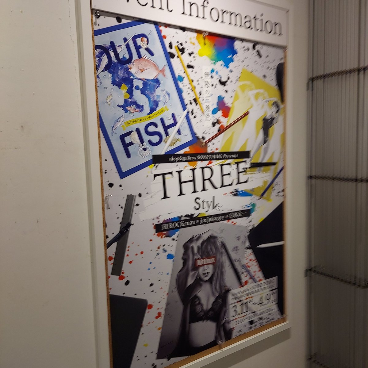 白水さんたちの展示も見てきました! それぞれの良さ、技術の高さに脱帽です。これは現地で皆見てほしい。 そしてらくがきスペースにちょっとしろもおじゃましました。 #THREEStyle #SOMETHING
