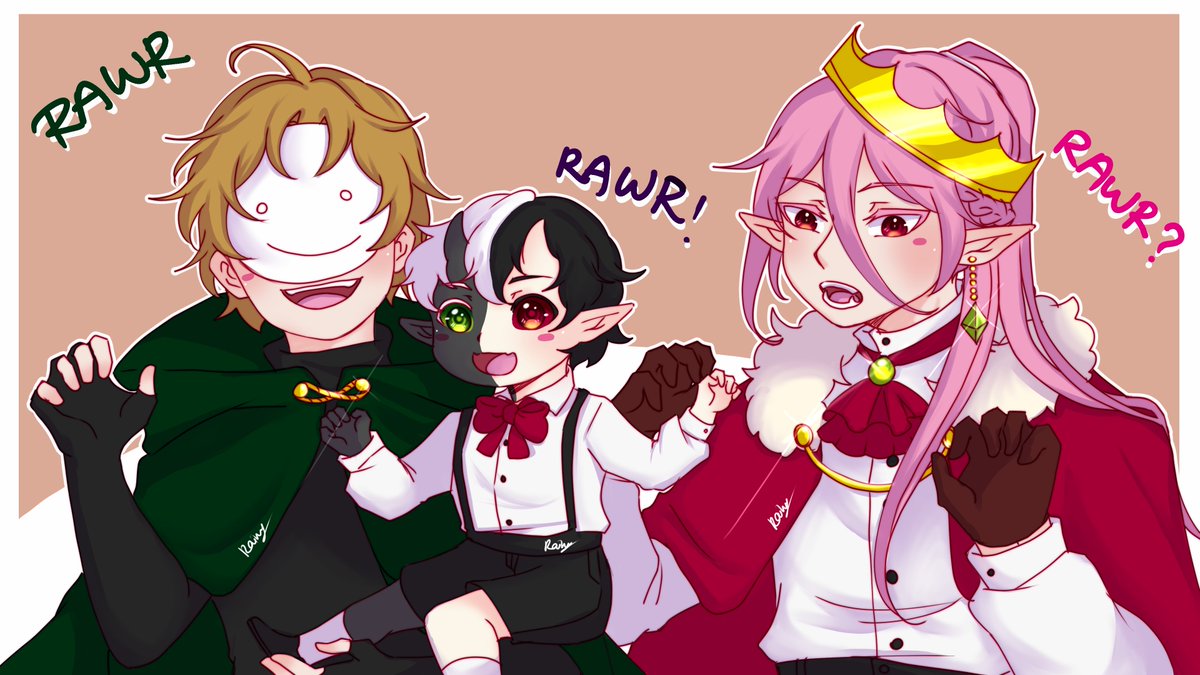 RAWR!!! A small contribution for somnitrio and no, I am not used to drawing 3 characters at once. #dreamfanart #ranboofanart #technobladefanart #somnitrio