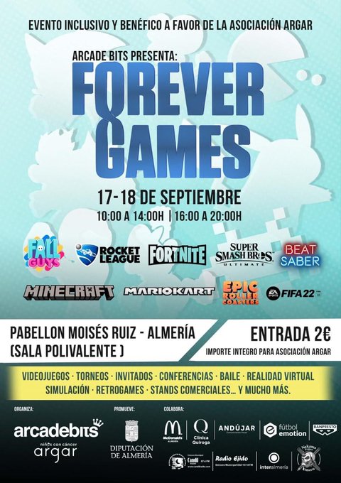 Si mezclas videojuegos y solidaridad, ¿qué tenemos? Forever Games. Con un coste de SOLO 2€ que irá destinado íntegramente a la Asociación ARGAR. Un evento que dará mucho de qué hablar “Forever & ever”. #videojuegos #cosplay #somosarcadebits