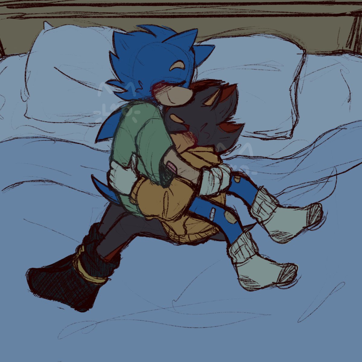 What's better than cuddleing with your partner after a long day? . . #sonic #sonicthehedgehog #shadow #shadowthehedgehog #sonicau #namelessheroau #nhshadow #nhsonic #sonadow #sonadowfanart