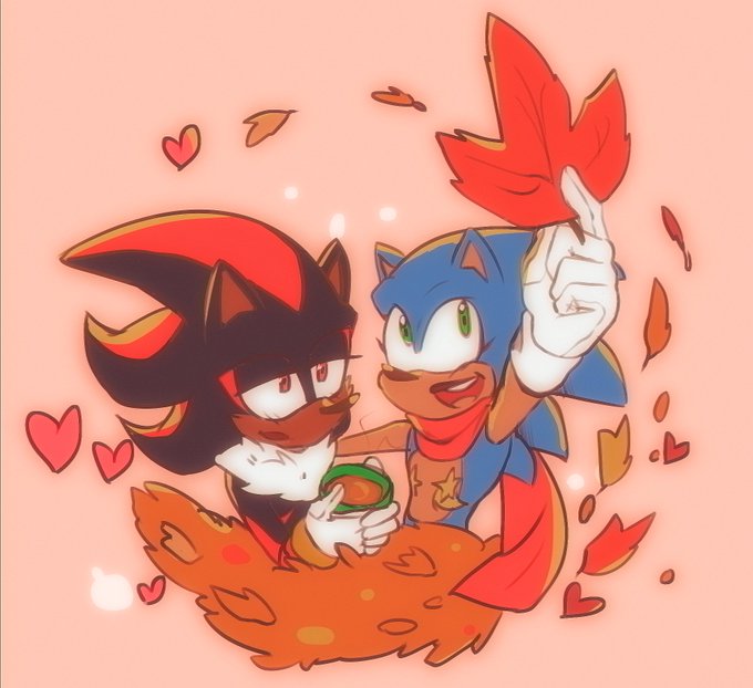 #Sonadowtober Day 7 - Leaves He found a leaf very close to his eye color. Also Sonadow Friday #Sonadow #SonicTheHedgehog #ShadowTheHedgehog