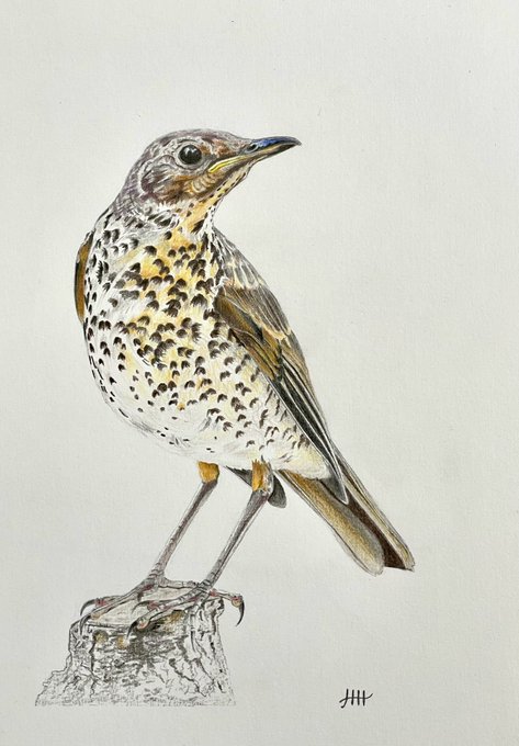 My drawing is finished ✍️ A song thrush #songthrush #voiceofspring #birds #bird #colouredpencils #drawing #art #artistontwitter