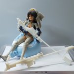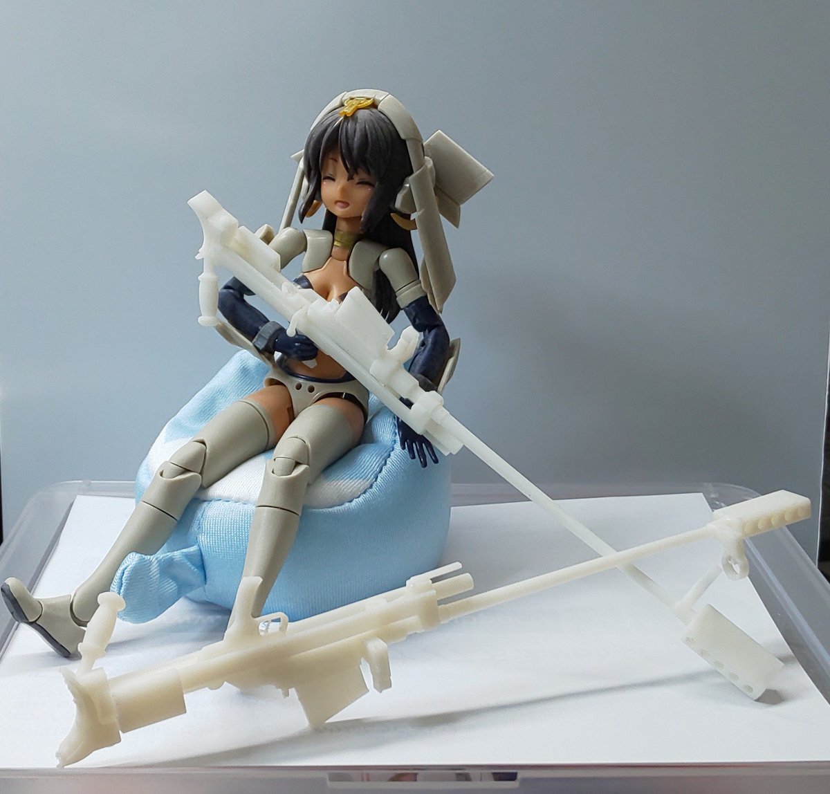サイズ感はこんなもんです(`・ω・´)ノ ん?同じSK本舗さんの水洗いレジン(白)ですけど、ちょっと今回のは色が濃い目ですねぇ(手前においてあるやつ) UVライトで二次硬化したからかな?? #SonicMini #3Dプリンタ #メガミデバイス