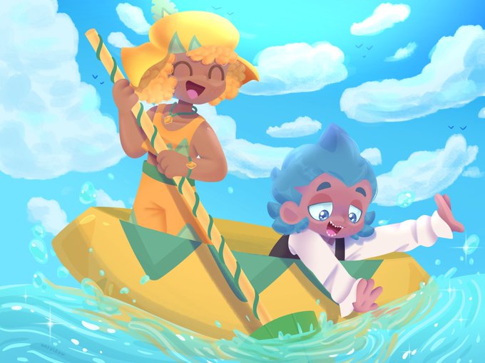 Biscoito Manga e Biscoito Tubarão de Sorbet estão indo em uma aventura 🥭🦈 Para onde vocês acham que eles vão?🌊 Fanart por: @AndCoxinhazz nos marque em @CRKingdom_BR para ser destaque #CookieRun #CookieRunKingdom #MangoCookie #SorbetSharkCookie #CookieRunFanart