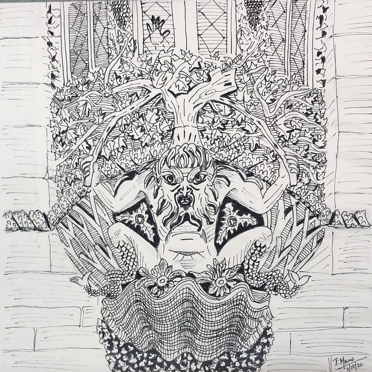 Who is behind the window?? Whom the gargoyle is protecting?? #InkToberDay1 #inktober2022 #inktobergargoyle #soulflowink