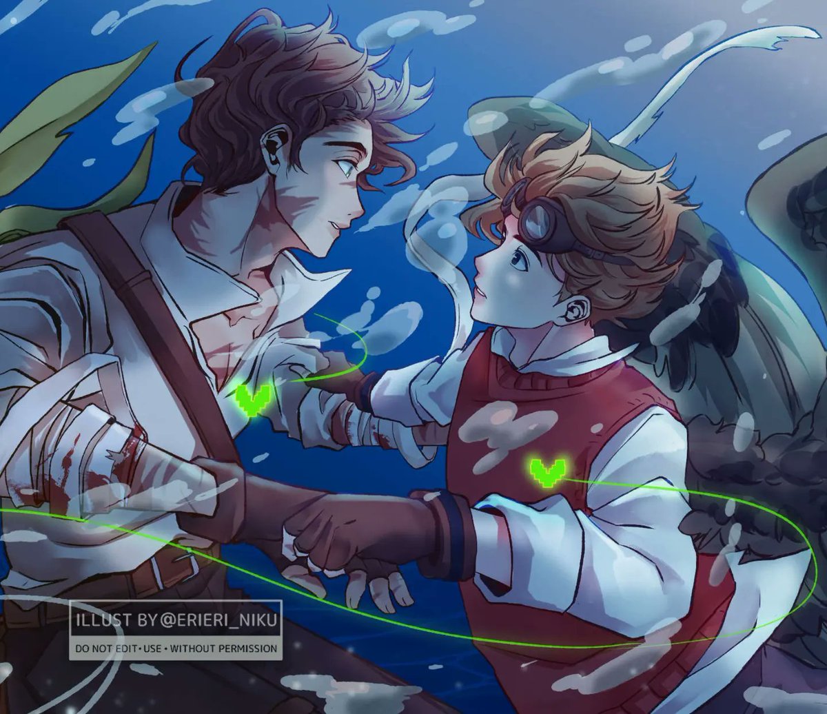 DAY 10 OF #TwstOber : "HALF" *ADeuce* Two halves conjoined by an irregular variable. Three parts of a whole. Link to Prompts: at.tumblr.com/raven-at-the-w… #twst_BL #twst_OC #twstファンアート #エーデュス #エデュス #ツイステファンアート #soulmates