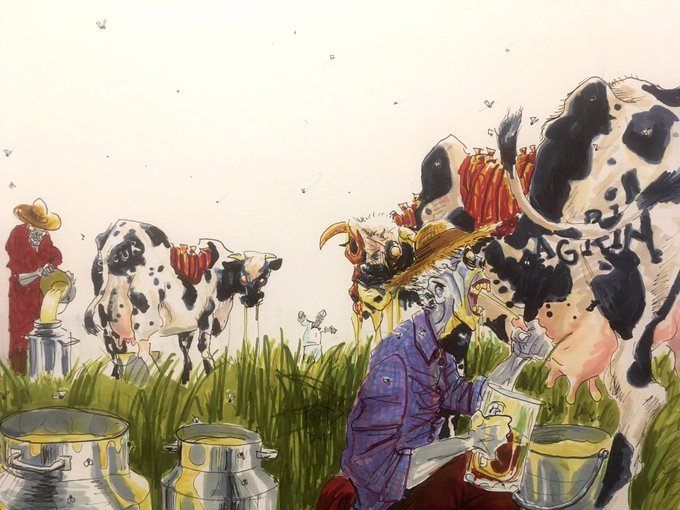 Se debía el de ayer, que salió un poco agrio. Inktobereando 2021 D-11 #Agrio #Sour #inktober #SourMilk #LecheAgria #Leche #Milk #Zombis #Zombies #Vacas #cows #inktober2021 #inktober2021Sour #inktoberchallenge2021 #inktoberpromptlist