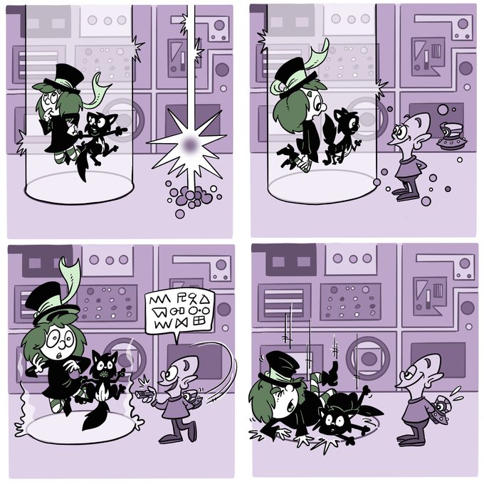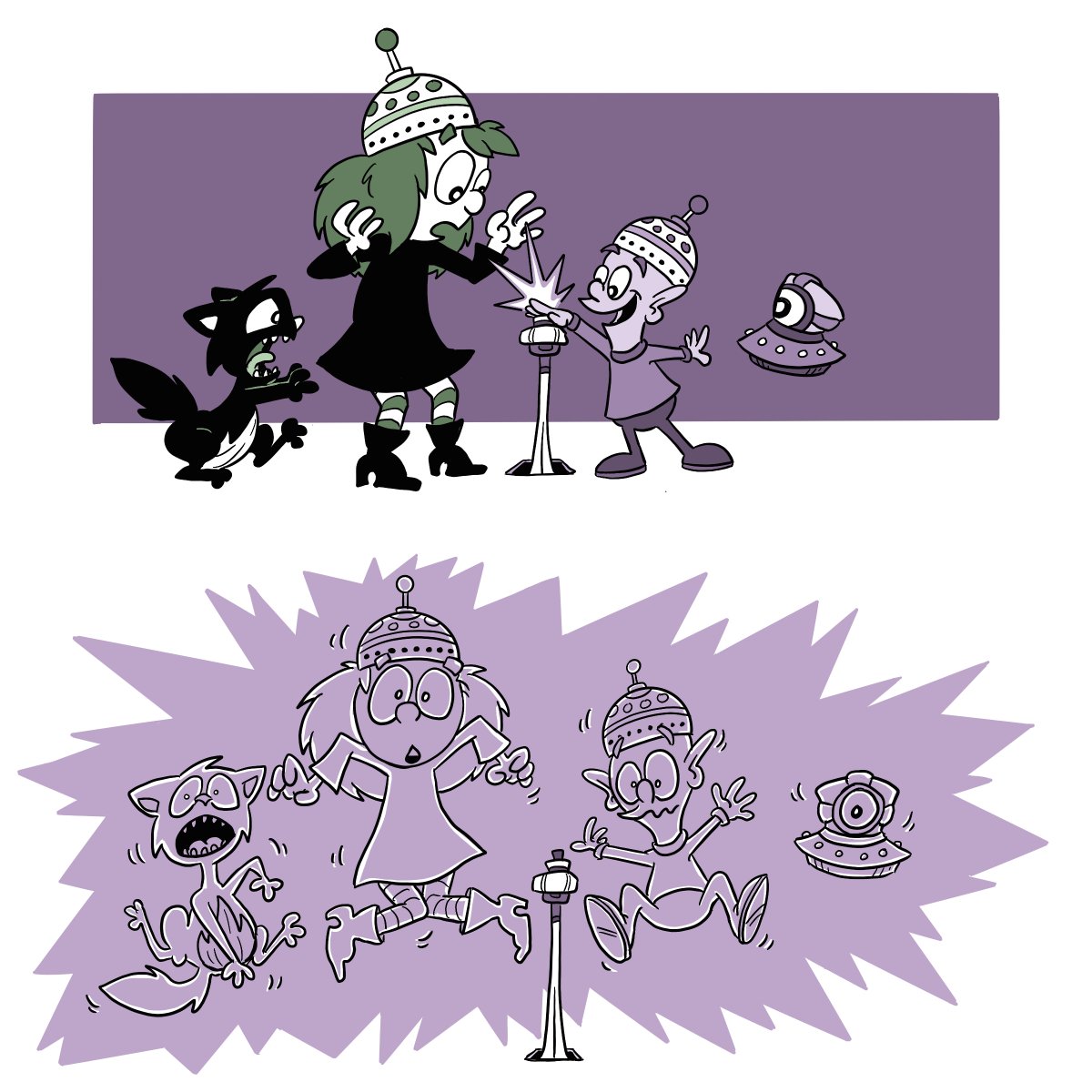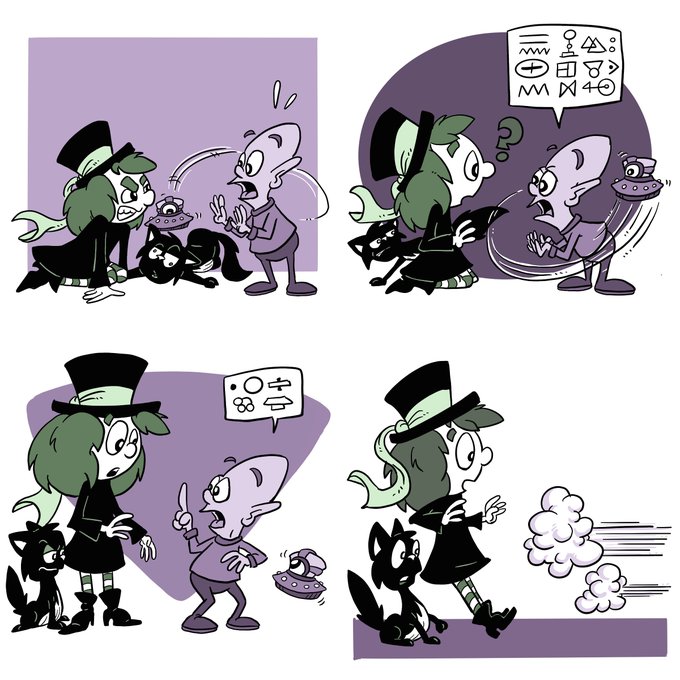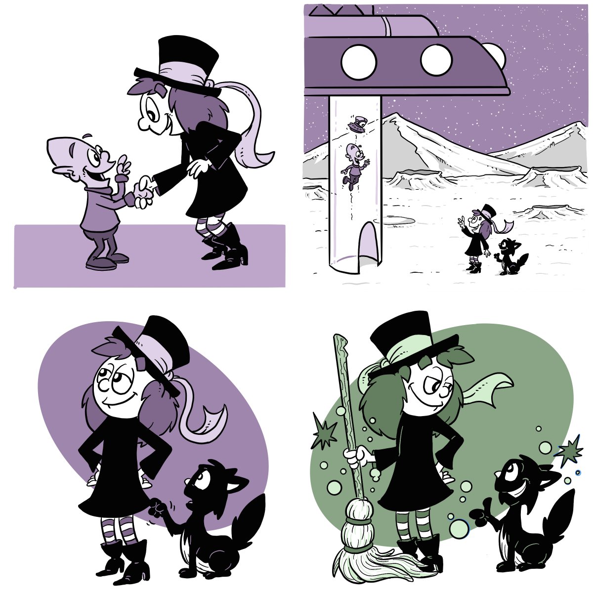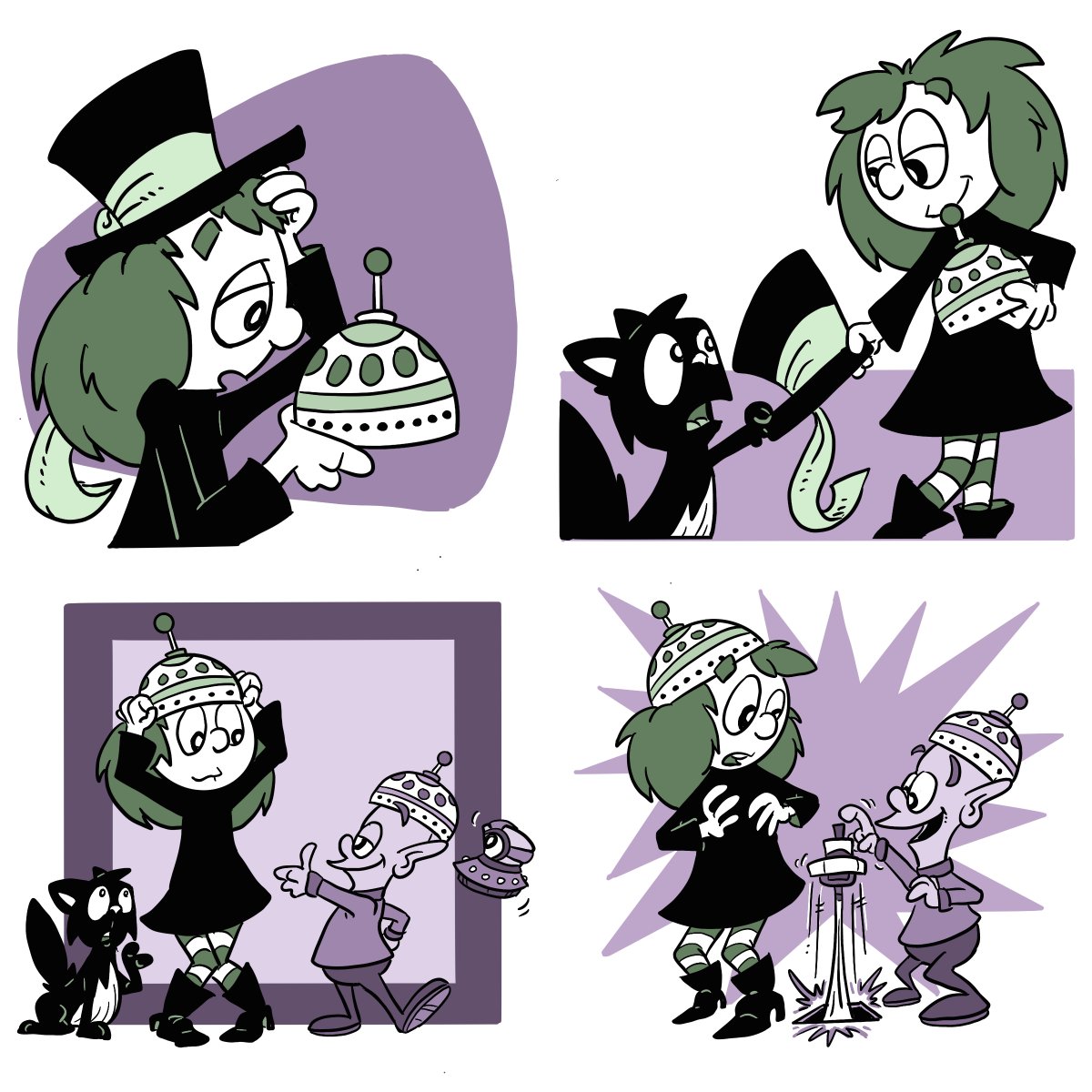 Sometimes fashion communicates better than words. Day/page 21 of the October story. #witchtober #witch #blackcat #ufo #spacealien #childrensbooks #childrensbookillustration #drawlloween #inktober #halloween