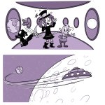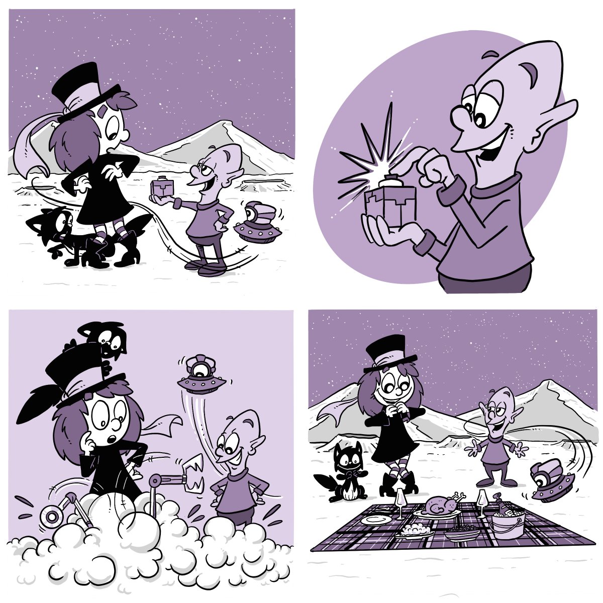 We've reached Day/page 26 of the story ... time for a little refreshment break. #witch #witchtober #blackcat #ufo #spacealien #halloween #childrensbooks #childrensbookillustration #drawlloween #inktober