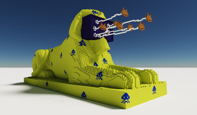 Four hours time .. five new artworks. And this special sixth 1/1 piece. #8BITvesusEgypt #NFT #Cryptoart #voxel #voxelart @magicavoxel @MVC_discord #SpaceInvaders #Nifty @opensea