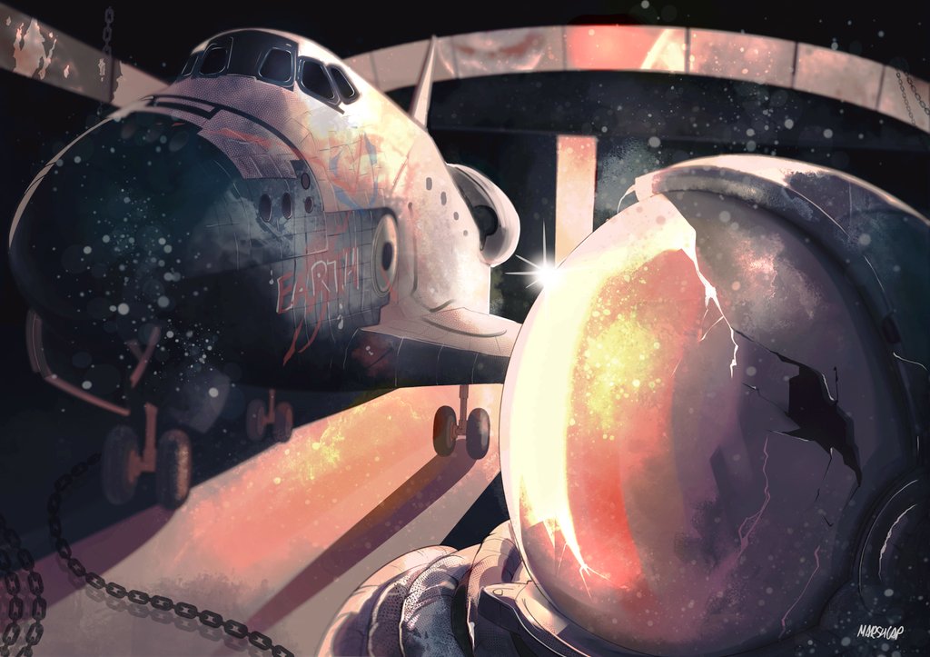 Slowly getting there with the colours. Meanwhile here's some space stuff. #spaceshuttle #illustration