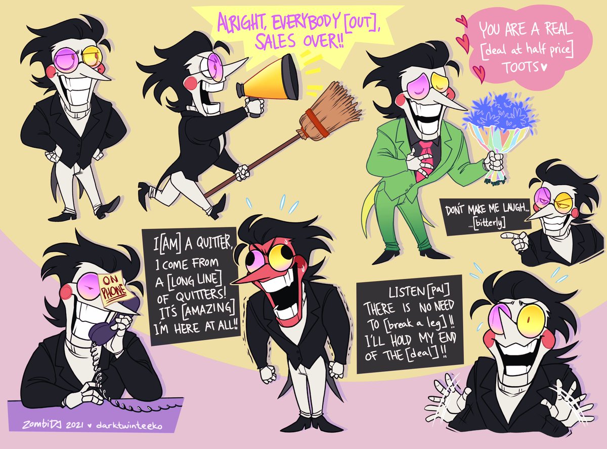 I've decided that my Spamton will have the energy of Bernard from Black Books. He is a bitter bastard who hates customers. Only wants to be left alone unless he can benefit mooching off on others. #spamton #spamcember #spamtonblack