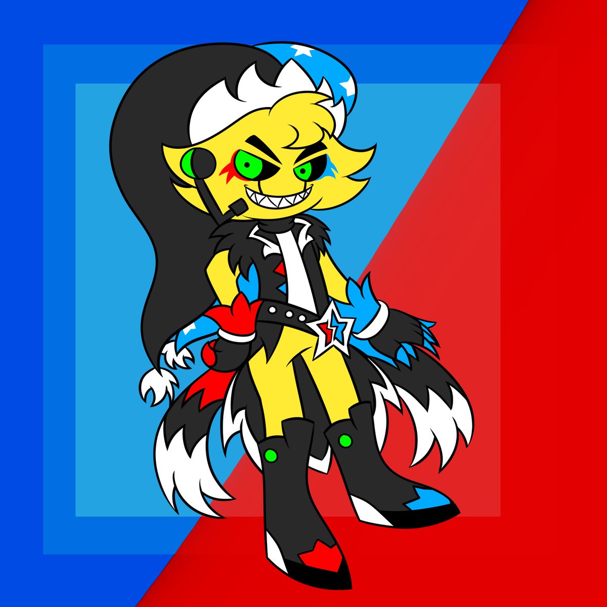 What started of as a joke now spiraled into its own AU; I present to you Splarktoon! Meet the idols, Spark & Fark as well as their fusion, Death Metal Sfarx! I wanna thank @Yuro_the_lee for helping with Sfarx's design! 😄 #sparktheelectricjester #sparktej #fanart