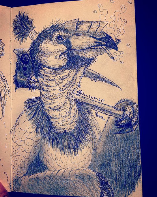 Alguns sketchs de pássaros humanóides atrasado pro #spectember #bird #inkart #inktober2022 #dinosaur #paleoart #specevolution #actualartist #sketchbook #wip #velociraptor #vulture #hornbill #characterdesign #creaturedesign