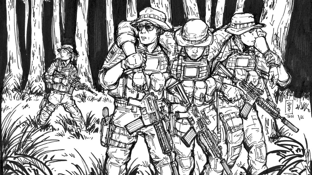Portrait piece of Ava Ceras, @YourToxicMaid's PC for the bossfightuniverse subreddit. And my #inktober2021/#campaigntober submission. #tacticalart #miltober #mercenarysketch #revenant #demongirl #specoptober #merctober #inktober #inksketch
