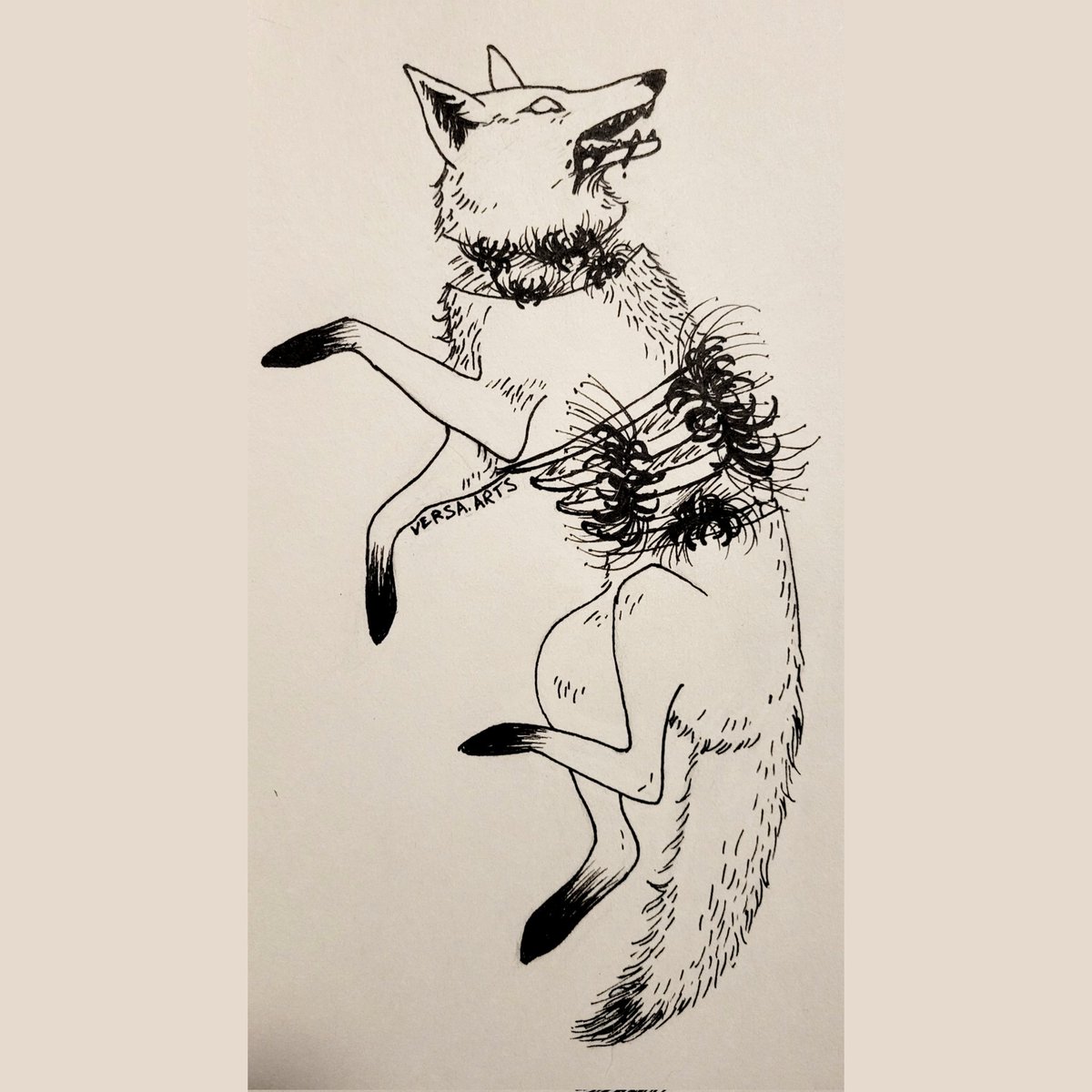 Dang I don't know how to crop things... Or draw freaking spider lilies Week 3! Spooky animals Did this totally last minute, but made it just under the wire #bubbletober #inktober2021 #fox #spiderlily