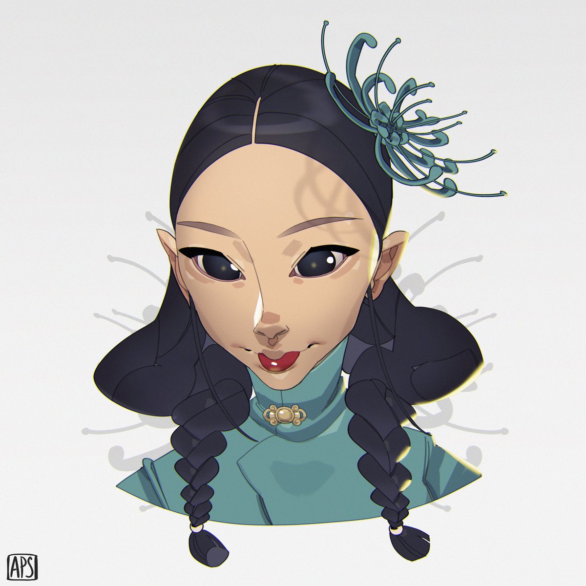 Happy Valentine's Day! 💙✨ Finished redesigning my stream mascot, Arcadia! Full resolution, no watermark in a VIP Discord channel for a limited time for my Twitch subs! #VTuber #ENVtuber #spiderlily #myart #SupportHumanArtists #animeart #CLIPSTUDIOPAINT #DigitalArtist