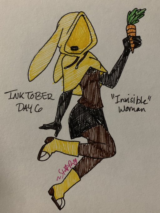 #inktober2021 day 6: Invisible Woman from #spooktobertrickortreat Cute invisible bunny girl offering a carrot 🥕