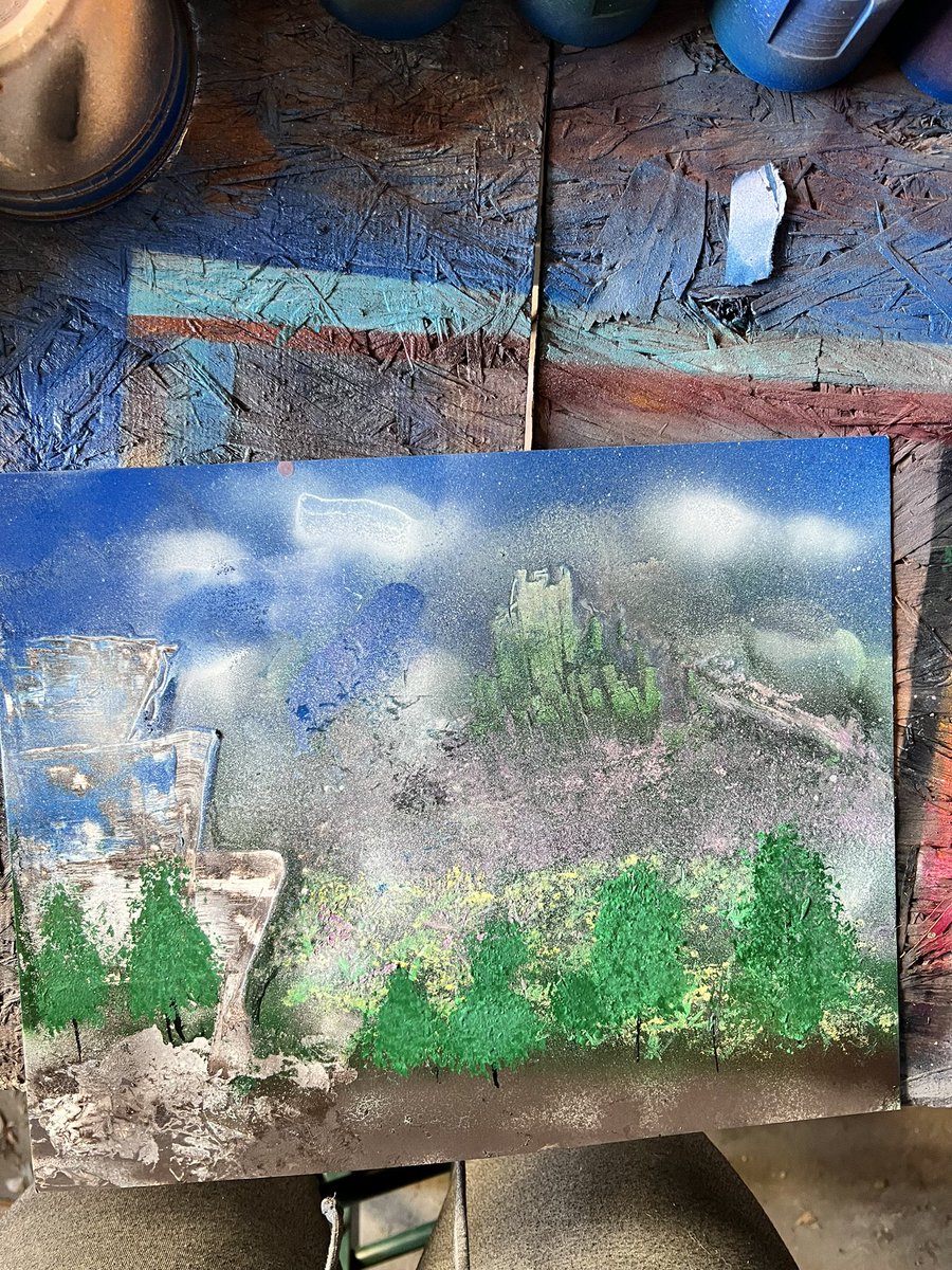 スプレーアートの練習‼️ 滝と水しぶきを描いてみました。 地面の質感と光✨まだ難しい🥊 #スプレーアート #スプレーアート好きと繋がりたい #sprayart #spraypaintart #spraypaint #spraycanart #アトムハウスペイント