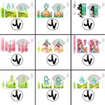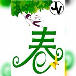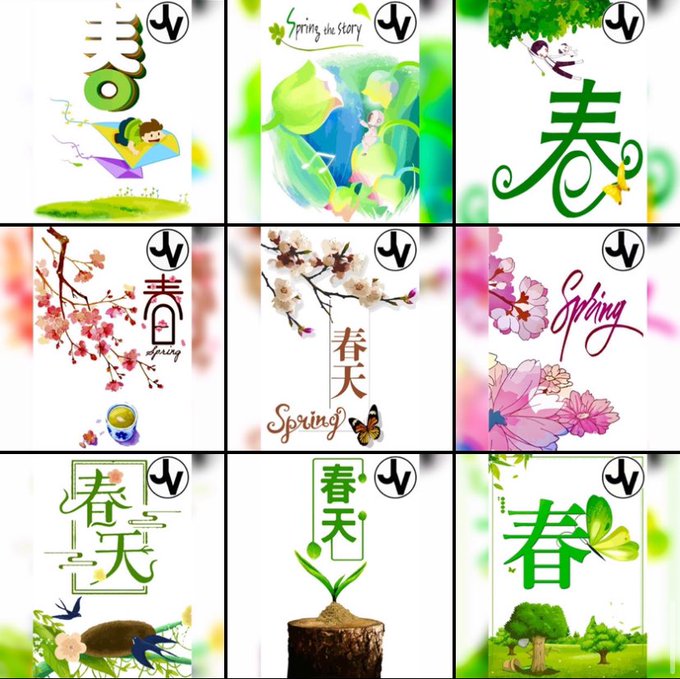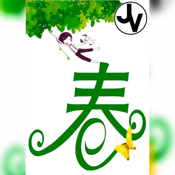 Green leaves with a pair of dark blue birds flying from the horizon; it includes a border with kanji letters in the centered position. #spring #springday #springdays #springseason #spring2023 #art #artist #artwork #digital #digitalart #digitalartwork #illustration #illustrator