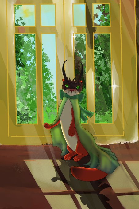 Here's my second contribution to the #ExandrianMasquerade, little Sprinkle is ready to strut his stuff, totally not a certain fey, no no. #CriticalRoleFanart #CriticalRole #Sprinkle background is by @kittenmitten20