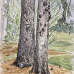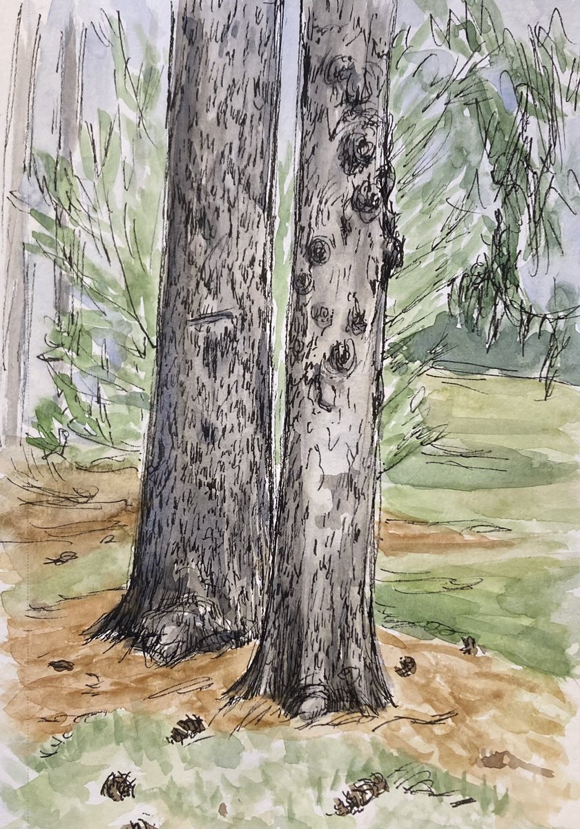 Spruce trees from my very chilly sketch outing at @SnugHarborCCBG yesterday. #art #landscape #ink #watercolor #trees #spruce #winter #statenisland