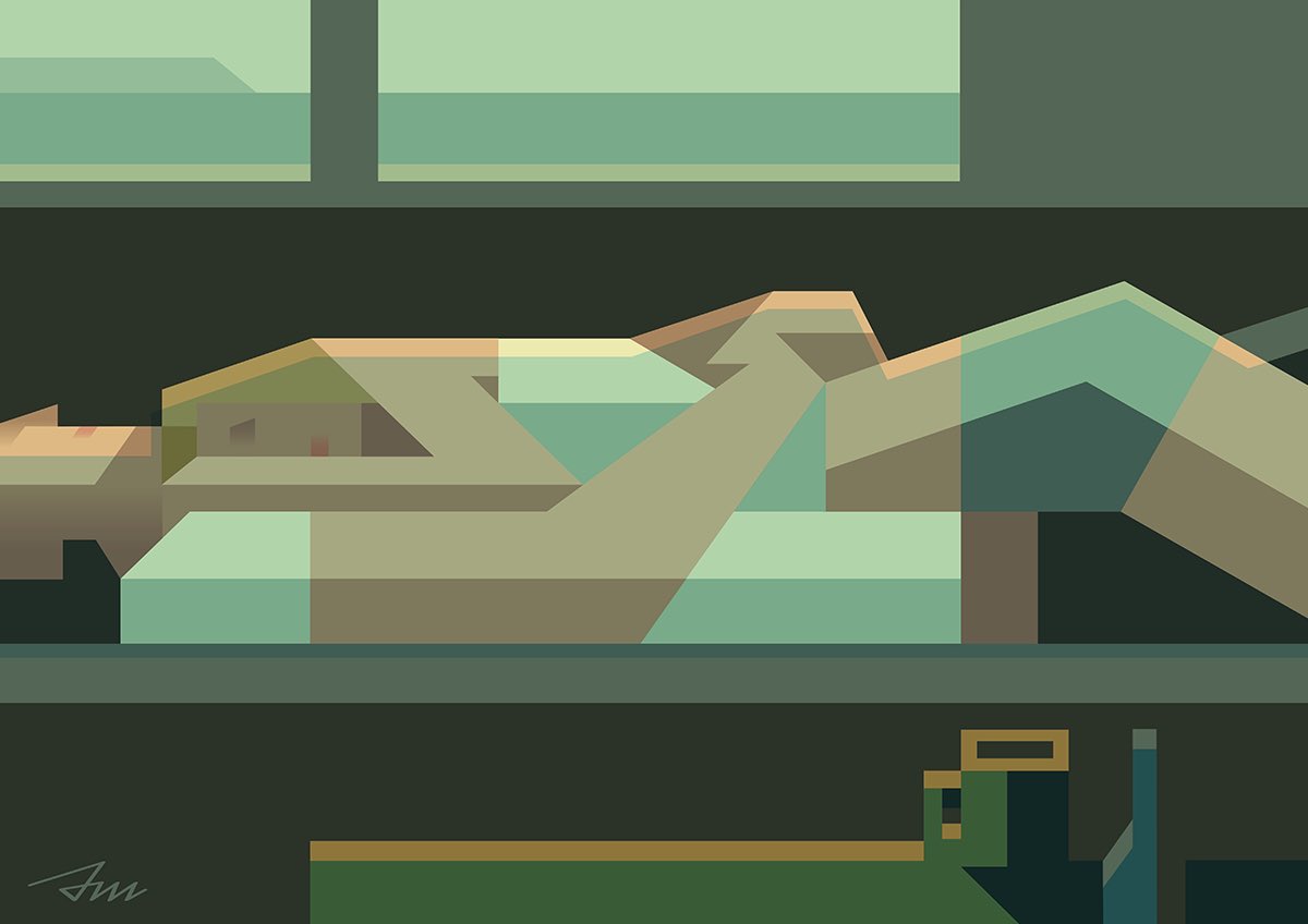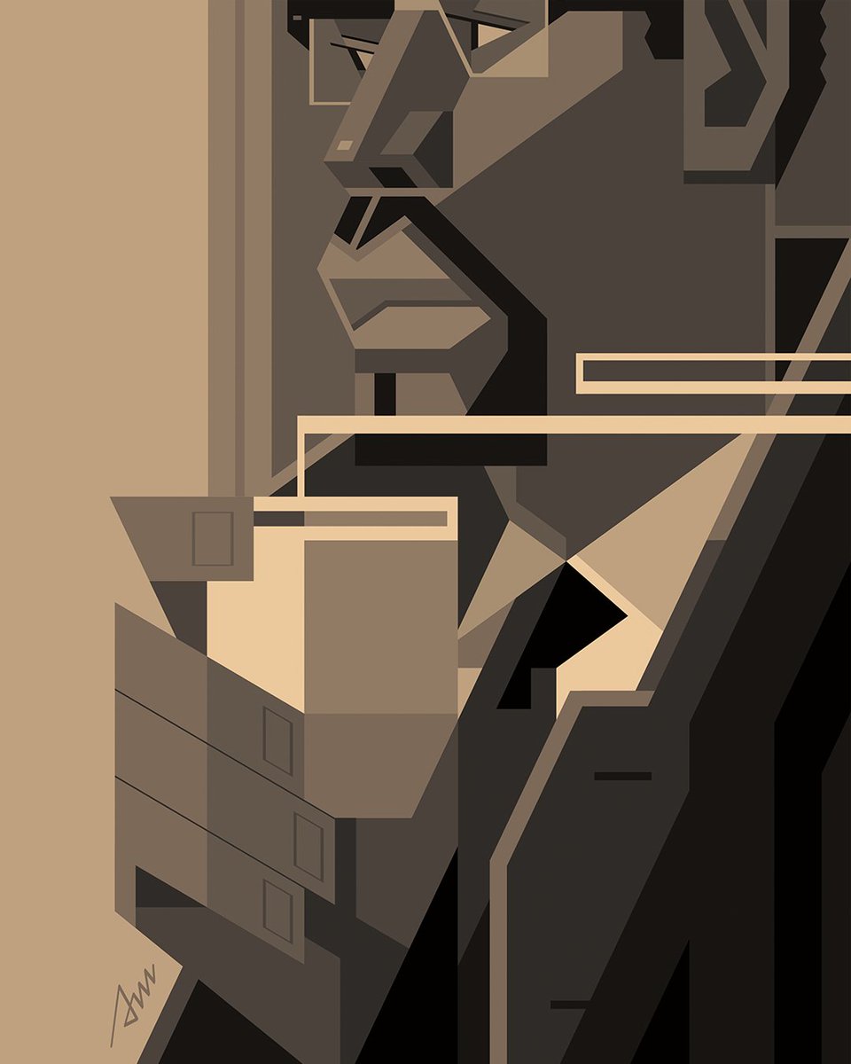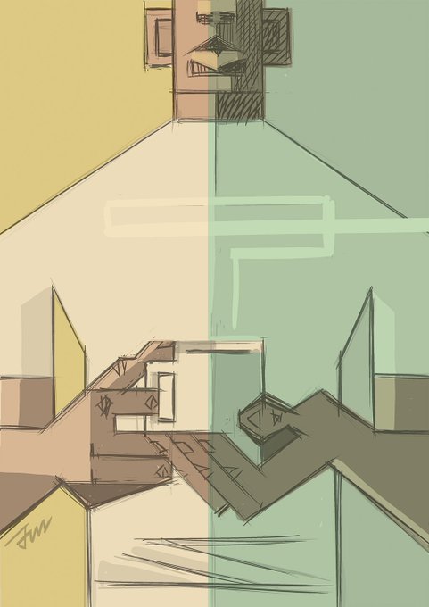 ガイドラインを別レイヤーにコピペして面を作成するようになってから面同士の並びの精度が上がった。調整が必要なくなった。初めの頃はガイドに合わせて手動でゴリゴリ作成していました。#wip #illustration #coffee #squaremodern #jun_takahashi