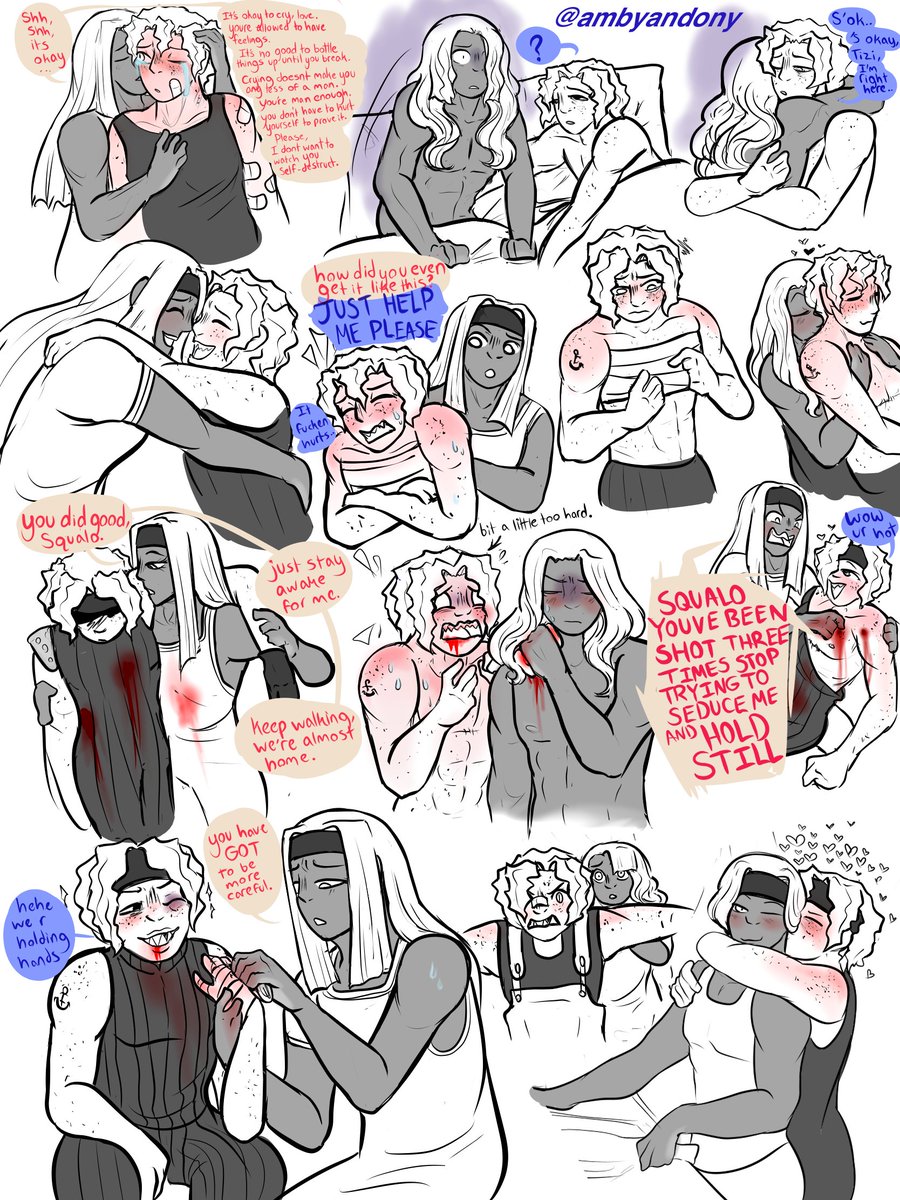 TOOK ME NEARLY 2 WEEKS BUT I GOT THESE SQUALO AND TIZIANO SKETCHES DONE <3 + some of the jokes may be a bit suggestive so just a heads up #JoJosBizarreAdventure #JJBA #jjbafanart #ventoaureo #goldenwind #squatizi #tizianoandsqualo #squaloandtiziano